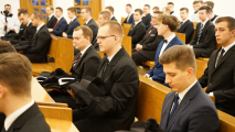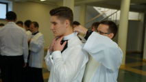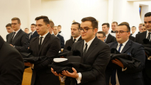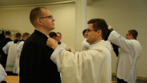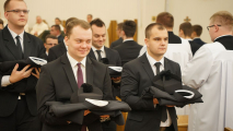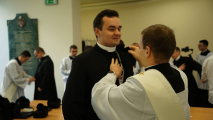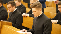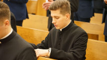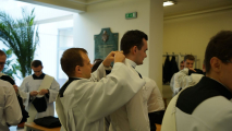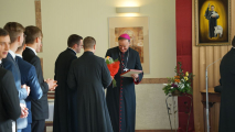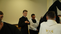 Po homilii Ksiądz Biskup przyjął szczerą wolę alumnów, by przyjąć sutannę i w specjalnym obrzędzie poświecił strój duchowny. Po czym Bracia z roku III wyszli ostatni raz z kaplicy seminaryjnej w garniturach. Po przywdzianiu sutanny z wielkim uśmiechem na twarzy Bracia wrócili do kaplicy i odmówili modlitwę ofiarowania życia Bogu. Na zakończenie Mszy św. wszyscy głośno i wyraźnie wyśpiewali hymn seminaryjny.