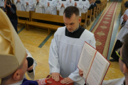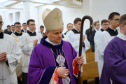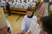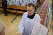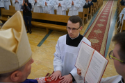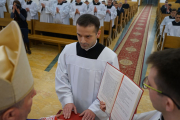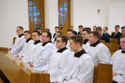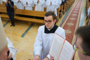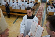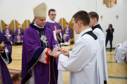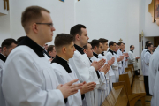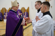 W ostatnim dniu rekolekcji wielkopostnych, w sobotę 20 marca, ks. bp Leszek Leszkiewicz udzielił 13 alumnom III roku posługi lektoratu oraz 12 alumnom IV roku i jednemu z Kongregacji Oratorium św. Filipa Neri posługi akolitatu.