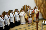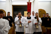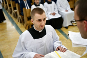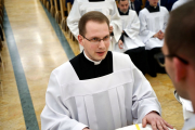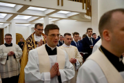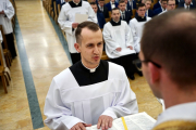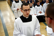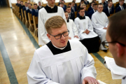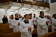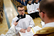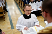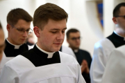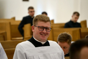 Na początku odbyła się liturgia słowa wraz homilią, w której Ksiądz Rektor Jacek Soprych nawiązywał do gestu prostracji podczas przyjmowania święceń: