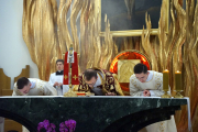 Leżenie na kształt krzyża wiąże się z przyjęciem postawy małości, włączeniem w tajemnicę męki, śmierci i zmartwychwstania Chrystusa. W ten sposób wyświęcany ma być ikoną samego Chrystusa. (…) Bóg Ojciec, tak nas umiłował, jak umiłował swego Syna Jezusa Chrystusa. Czy w to wierzysz? - pytał Ksiądz Rektor