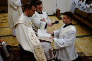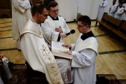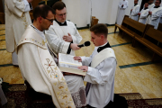 Po niej odbył się obrzęd przyrzeczenia. Diakoni podchodzili do ołtarza i kładli ręce na Ewangeliarzu trzymanym przez Księdza Rektora. Każdy z nich wypowiadał przy tym słowa przysięgi: