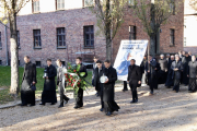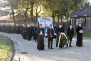 Po wejściu do dawnego obozu koncentracyjnego przeszliśmy w milczeniu pod Ścianę Straceń, gdzie został złożony wieniec oraz światła pamięci przez delegację Alumnów. Po krótkiej modlitwie przeszliśmy pod blok 25, w którym mieszkał nasz Patron.