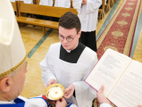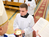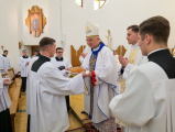W czasie rekolekcji, w uroczystość Zwiastowania Pańskiego Biskup Artur Ważny udzielił posług - 16 kleryków z roku III oraz 17 kleryków z roku IV przyjęło odpowiednio posługę lektora oraz akolity. W homilii Ksiądz Biskup Artur zachęcił kandydatów do przyjęcia posług by karmili się Słowem Bożym, zasłuchując się w nie, by to Słowo „pokochali uszami” oraz sercem, aby mogło w nich wzrastać. Przyjęcie posług stanowi kolejny krok na drodze formacji do kapłaństwa, którego szczególnym znakiem jest dłoń przyjmowanego do posługi położona na otwartej księdze Pisma Świętego - w przypadku lektora i na patenie z chlebem przeznaczonym do konsekracji - w przypadku akolity.
