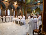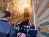 2 maja, piąty dzień pielgrzymki do Rzymu rozpoczęliśmy od Eucharystii w Bazylice św. Piotra w Watykanie przy ołtarzu Katedry Piotra. Mszy z udziałem dużej grupy Polaków przewodniczył ks. rektor Jacek Soprych. Po zakończeniu procesjonalnie udaliśmy się do grobu św. Jana Pawła II, gdzie zawierzyliśmy nasze intencje i drogę powołania. Później mogliśmy zobaczyć Bazylikę i pomodlić się przy grobie św. Piotra oraz wielu innych papieży w Grotach Watykańskich (m.in. św. Pawła VI, bł. Jana Pawła I, Benedykta XVI). Z Placu św. Piotra skierowaliśmy się wraz z księżmi: ks. Maksymilianem Lelito i ks. Nikodemem Kowalczykiem z naszej diecezji, studiującymi w Rzymie, do Bazyliki Santa Maria in Trastevere, Bazyliki św. Bartłomieja na Wyspie Tyberyjskiej. Zobaczyliśmy także Usta Prawdy, Circus Maximus, Bazylikę św. Sabiny na Awentynie i Ogród Pomarańczy, z którego roztacza się piękny widok na Rzym, oraz Bazylikę św. Bonifacego i Aleksego. Odwiedziliśmy także Anselmianum, czyli Papieski Instytut Liturgiczny Świętego Anzelma, gdzie razem z benedyktynami modliliśmy Liturgią Godzin w języku łacińskim. Ostatnim miejscem, które zwiedzaliśmy tego dnia były Muzea Watykańskie, a wśród nich Kaplica Sykstyńska.