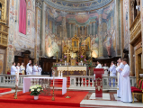 Po całonocnej podróży 28 kwietnia świt przywitał nas widokami austriackich Alp. Pierwszym miejscem na pielgrzymim szlaku była Padwa i Bazylika św. Antoniego, po której oprowadził nas o. Wojciech Parylak, dzięki któremu mogliśmy poznać historię św. Antoniego oraz całej bazyliki. Przewodnik zwrócił uwagę na wielość polskich akcentów znajdujących się w świątyni. Po zwiedzaniu modliliśmy na Mszy Świętej, której przewodniczył ojciec duchowny Roman Hopej.
