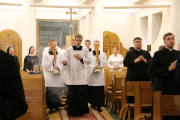 28 maja we wtorek gościliśmy w Seminarium Neoprezbiterów, którzy celebrowali pod przewodnictwem prezesa rocznika ks. Jakuba Tokarza Mszę Prymicyjną w naszej kaplicy. Okolicznościową homilię wygłosił ks. Tomasz Rąpała, który był pierwszym Ojcem Duchownym nowo wyświęconych kapłanów. Na koniec Eucharystii Neoprezbiterzy udzielili prymicyjnego błogosławieństwa kapłanom, alumnom, siostrom zakonnym i pracownikom świeckim.