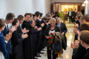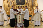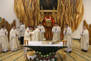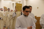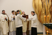 Ksiądz Rektor Jacek Soprych na początku Mszy Świętej poprosił Księdza Biskupa Andrzeja Jeża o poświęcenie sutann dla Alumnów roku III. Nawiązał przy tym do sutanny obłóczynowej sługi Bożego ks. Jana Czuby, którą otrzymał w darze dla Seminarium: