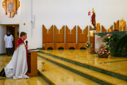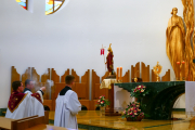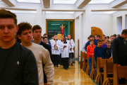 Dzień Otwarty rozpoczął się o godz. 10.00 adoracją Najświętszego Sakramentu, w której uczestnicy, opierając się na Słowie Bożym, rozważali życie Jezusa Chrystusa. Mszy świętej w kaplicy seminaryjnej o godz. 10.45 przewodniczył ks. dr Tomasz Rapała, były ojciec duchowny Seminarium, a obecnie rekolekcjonista w Centrum Formacyjno-Rekolekcyjnego „Arka”. W swojej homilii podkreślił prawie 200 uczestnikom z ponad 30 parafii, że w wierze chodzi przede wszystkim o relację z Jezusem. Zauważył, że w wiara łączy się z odwagą, która usuwa lęk niepozwalający pójść zdecydowanie za Chrystusem