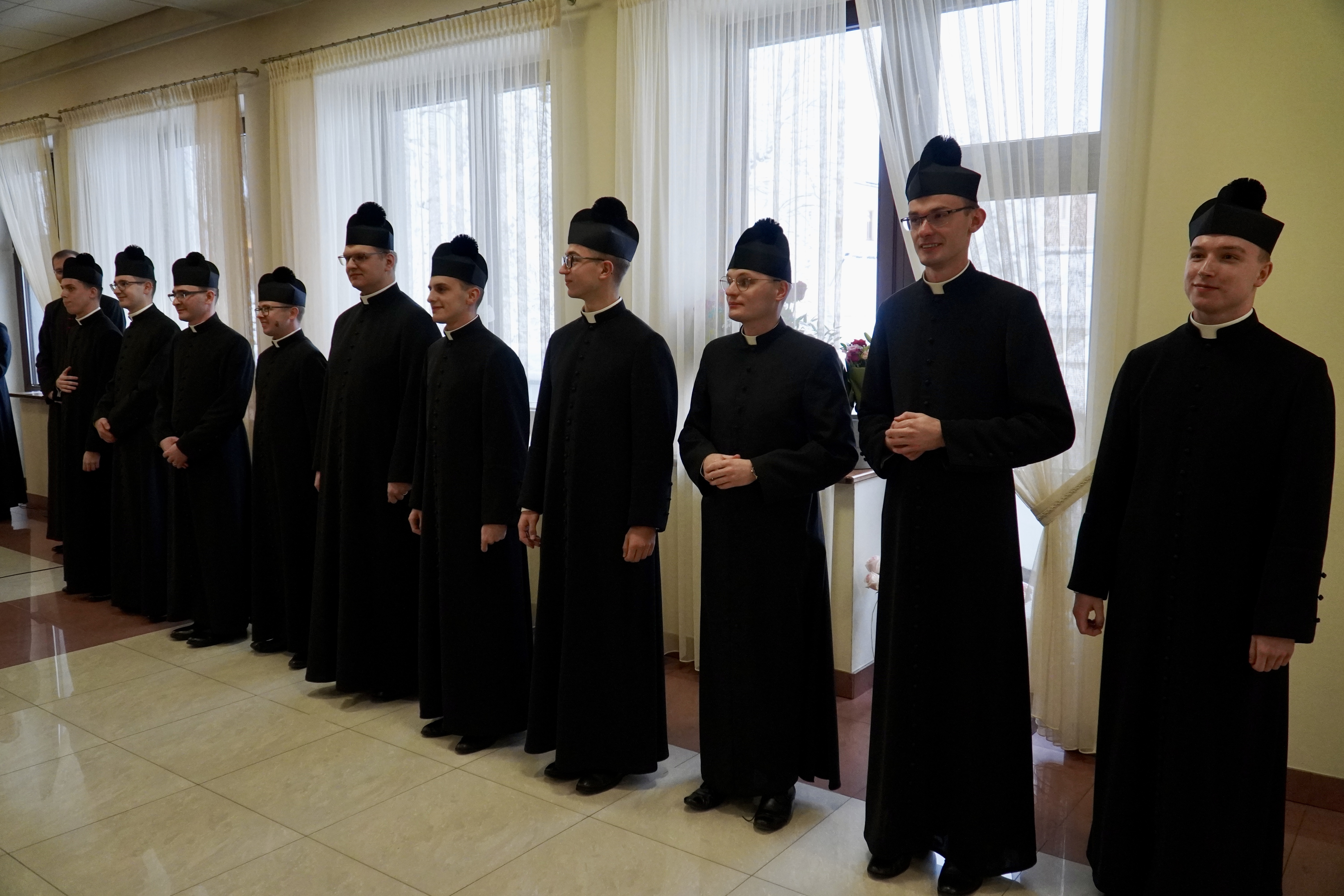 Bezpośrednio po rekolekcjach 23 listopada 2025 roku, w Uroczystość Chrystusa Króla Wszechświata, podczas Mszy Świętej celebrowanej przez JE Ks. Bpa Andrzeja Jeża 10 Alumnów III roku otrzymało strój duchowny, który jest codziennym wyrazem wiary i przynależności do Chrystusa. Jest też dla każdego kleryka osobistym znakiem, który przypomina o ciągłej potrzebie wzrostu duchowego oraz coraz głębszego upodabniania się do Chrystusa. Tegoroczne obłóczyny odbyły się w zimowej scenerii, do czego odniósł się w homilii Ksiądz Biskup. Porównał sutannę do śniegu, który dla oczu jest czymś przyjemnym i pięknym – tak jak sutanna, jednak swoim ciężarem potrafi łamać konary drzew. Ksiądz Biskup, Ojciec Wspólnoty Seminaryjnej, życzył klerykom, by tak samo sutanna przez swoją wymowę, wyłamywała w nich to co niedoskonałe, i tworzyła miejsce na wzrost nowych dobrych gałązek, które wydadzą piękny owoc.