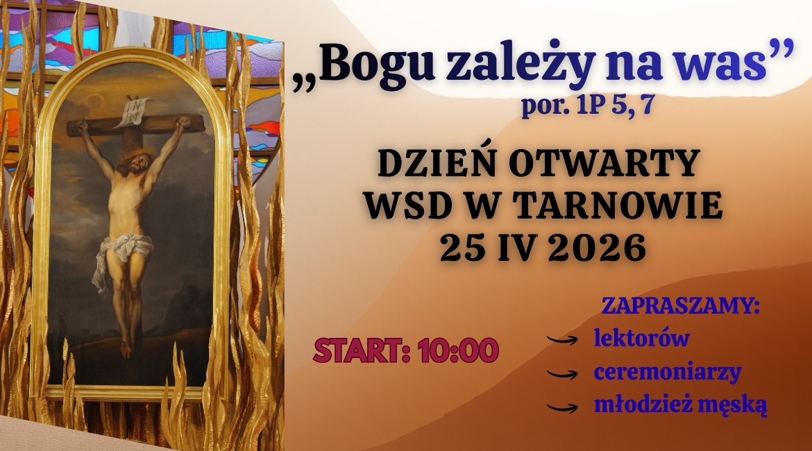 Serdecznie zapraszamy na Dzień Otwarty WSD w Tarnowie, który odbędzie się w sobotę, 25 kwietnia o godz. 10.00. Serdecznie zapraszamy młodzież męską, lektorów i ceremoniarzy wraz z Księżmi Opiekunami.