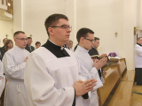 O godzinie 10:30 rozpoczęła się uroczysta Msza Święta pod przewodnictwem księdza Rektora Jacka Soprycha oraz księdza Prorektora Pawła Bogaczyka, a także ojca duchownego Adama Kumorka. W homilii, którą wygłosił ksiądz Paweł, zapytał rodziców i alumnów: „Kim dla Ciebie jest Jezus?” Z oczu nie jednej mamy popłynęły łzy. Po zakończonej liturgii, ksiądz Rektor zaprosił rodziców na wspólny obiad, a po nim na krótką „wywiadówkę”, czyli rozmowę z księżmi przełożonymi roku V.
