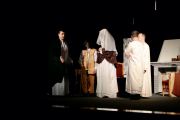Po fantastycznym spektaklu głos zabrał Ksiądz Biskup Ordynariusz, który zwrócił uwagę na wiarę jaka powinna nam towarzyszyć podczas korzystania z mediów społecznościowych, oraz podkreślił ich rolę ewangelizacyjną. Jako podsumowanie Ksiądz Biskup uczynił Anioł Pański, w intencji ludzi związanych z mediami i tych, którzy z nich korzystają. Po części w auli udaliśmy się na uroczysty obiad odpustowy, przy którym mieliśmy okazję podyskutować na temat: jak kleryk może i ma korzystać z mediów, aby głosić Chrystusa.