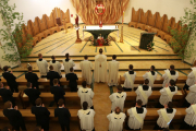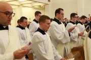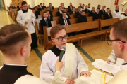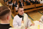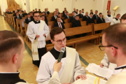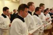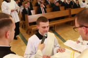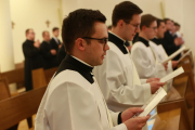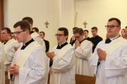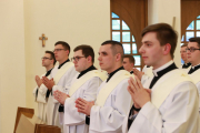 Po niej odbył się obrzęd przyrzeczenia. Diakoni podchodzili do ołtarza i kładli ręcę na Ewangeliarzu trzymanym przez Księdza Rektora. Każdy z nich wypowiadał przy tym słowa przysięgi: