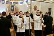 W ten sam dzień odbyła się Msza Święta księży przełożonych wraz z neoprezbiterami, której przewodniczył Ksiądz Prałat Andrzej Michalik, były rektor naszego seminarium. Po niej odbyło się spotkanie w Auli św. Jana Pawła II w naszym budynku seminaryjnym, gdzie klerycy przygotowali specjalne przedstawienie w związku z pożegnaniem neporezbiterów. Ksiądz Rektor Jacek Soprych podziękował za wspólnie sprawowaną Eucharystię i za modlitwę w naszej intencji. Następnie prezes rocznika neoprezbiterów ks. Mateusz Bugno wyraził swoją wdzięczność księżom przełożonym, siostrom Józefitkom i klerykom za wspólnie spędzone 6 lat, a szczególnie za rodzinę, jaką tworzy wspólnota seminaryjna.