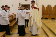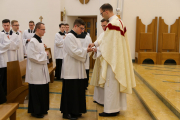 Następnie nawiązał się dialog pomiędzy mającymi wstąpić w szeregi Arcybractwa a Księdzem Rektorem Jackiem Soprychem, głównym celebransem, w którym kapłan pytał czego żądają i czy są gotowi wypełniać wszystkie obowiązki związane ze Strażą Honorową. Po czym alumni wypowiadają słowa przyrzeczenia: