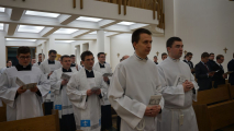 „Cała piękna jesteś Maryjo” to słowa, które każdego dnia śpiewaliśmy po łacinie w czasie nowenny przed Uroczystością Niepokalanego Poczęcia Najświętszej Maryi Panny. Początek grudnia to dla całej naszej wspólnoty seminaryjnej szczególny czas, w którym poprzez śpiew, modlitwę i słuchanie kazań przygotowujemy się do świętowania odpustu. W tym roku konferencje podczas nowenny wygłosił ks. Dyrektor Jacek Słowik. Poruszył w tym czasie wiele wątków dotyczących godnego i owocnego przygotowania do pełnienia posługi kapłańskiej. Starał się ukazać, jak dużo osobistego wysiłku intelektualnego, fizycznego oraz duchowego trzeba włożyć w rozeznawanie, a później realizowanie powołania, które jest darem samego Boga. Podejmując zagadnienia zawarte w wielu dokumentach Kościoła, ksiądz Jacek uświadamiał nam, że zawarte jest tam wielkie bogactwo myśli oraz nauczania świętych i błogosławionych, od których powinniśmy czerpać.