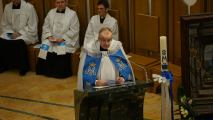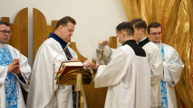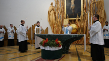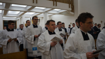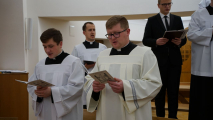 Następnie głos zabrał Ksiądz Biskup Ordynariusz podejmując temat rozczytywania i odkrywania dogmatu o Niepokalanym Poczęciu. Zwrócił uwagę na to, że musimy korzystać z tego, co w dogmatach jest ponadczasowe i wchodzić w tajemnicę Niepokalanego Poczęcia w tych realiach, w których aktualnie żyjemy. Prawdziwe życie przepełnione Bogiem i miłością do ludzi potrzebuje czerpania ze źródła, którym jest Niepokalane Poczęcie. Ksiądz Biskup zachęcił również do podjęcia pracy nad sobą oraz modlitwy za cały lud Boży, prosząc dla wszystkich o świętość i czystość serc. Na zakończenie poprowadził modlitwę Anioł Pański, po której udzielił nam pasterskiego błogosławieństwa. Ostatnim elementem świętowania był wspólny obiad w seminaryjnym refektarzu.