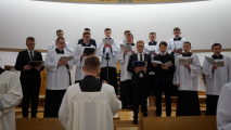 Następnie alumni otrzymali cudowne medaliki, jako znak przynależności do Rycerstwa Niepokalanej.