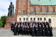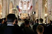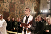 Trzeci dzień był szczególnie intensywny. Wyruszyliśmy bowiem z samego rana do Gniezna, gdzie czekał na nas Biskup Ordynariusz Andrzej Jeż. W katedrze gnieźnieńskiej przewodniczył Mszy Świętej, w której wszyscy uczestniczyliśmy, wygłosił także kazanie, w którym mówił o roli męczeństwa na podstawie historii św. Wojciecha i wspominanego tego dnia w liturgii św. Macieja, odniósł się także do etymologii łacińskiego określenia kapłana – sacerdos, które należałoby tłumaczyć jako święty dar. Po Eucharystii spotkaliśmy się z Prymasem Polski abp Wojciechem Polakiem, który z wielką otwartością podjął nas w progach swojej katedry i wprowadził w jej historię i historię relikwii św. Wojciecha, które się w niej znajdują. Następnie zwiedziliśmy katedrę, poświęcając szczególną uwagę słynnym Drzwiom Gnieźnieńskim. Z Gniezna wyruszyliśmy do Poznania, gdzie zwiedziliśmy katedrę z jej podziemiami i niektóre zabytki Ostrowa Tumskiego, po czym spacerowaliśmy poznańską starówką słuchając przewodnika, który zaznajomił nas z tym pięknym miastem.