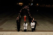 Drugiego dnia, w drodze do Lichenia zatrzymaliśmy się w sanktuarium Matki Bożej w Gidlach, o którym opowiedział nam jeden z ojców dominikanów, którzy się nim opiekują. Po modlitwie i zwiedzaniu wyruszyliśmy dalej, by po kilku godzinach jazdy przez środkową Polskę dotrzeć do Lichenia, zatrzymując się po drodze w Lesie Grąblińskim- miejscu domniemanych objawień Matki Bożej. W Licheniu, w Bazylice Matki Bożej Bolesnej Królowej Polski uczestniczyliśmy w Eucharystii, której przewodniczył ks. wicerektor, następnie zwiedzaliśmy sanktuarium i otoczenie. Wieczorem zaś tego samego dnia uczestniczyliśmy w apelu i nabożeństwie różańcowym, prowadzonym przez naszą wspólnotę, po wszystkim odbyła się procesja na placu sanktuaryjnym, podczas której niosąc lampiony modliliśmy się o wstawiennictwo Matki Bożej.