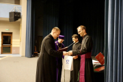 Następnie odbyło się spotkanie w auli św. Jana Pawła II, gdzie klerycy przygotowali specjalne przedstawienie w związku z pożegnaniem księży neporezbiterów. Ksiądz Rektor Jacek Soprych podziękował za wspólną Eucharystię i modlitwę w naszej intencji. Ksiądz Dziekan Marek Kluz wręczył księżom neoprezbiterom dyplomy ukończenia studiów. Prezes rocznika neoprezbiterów, ks. Kamil Majkrzak wyraził swoją wdzięczność księżom przełożonym, siostrom Józefitkom, klerykom i pracownikom świeckim za wspólnie spędzone 6 lat, a szczególnie za rodzinę i dom, które tworzy seminaryjna wspólnota.