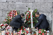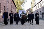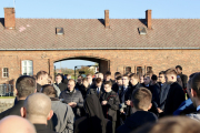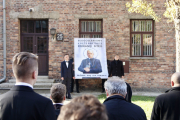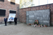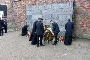 Po wejściu do dawnego obozu koncentracyjnego przeszliśmy w milczeniu pod Ścianę Straceń, gdzie został złożony wieniec oraz światła pamięci przez delegację Alumnów. Po krótkiej modlitwie przeszliśmy pod blok 25, w którym mieszkał nasz Patron.