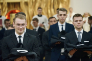 „Kiedy sam przyjmowałem sutannę, była ona znakiem szanowanym społecznie i cenionym. Dziś znacznie częściej niż kiedyś sutanna jest znakiem deprecjonowanym, poniżanym – dlatego potrzeba mocniejszego, bardziej zdecydowanego świadectwa. Nie czekajmy w naszym życiu z wyborem, po której stronie chcemy być. Wybieramy życie z Chrystusem i w Chrystusie i każdym działaniem chcemy ten wybór potwierdzać. Niech przyjęcie przez alumnów III roku będzie takim potwierdzeniem” – podkreślał Ksiądz Biskup.
