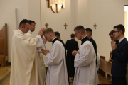 28 maja we wtorek gościliśmy w Seminarium Neoprezbiterów, którzy celebrowali pod przewodnictwem prezesa rocznika ks. Jakuba Tokarza Mszę Prymicyjną w naszej kaplicy. Okolicznościową homilię wygłosił ks. Tomasz Rąpała, który był pierwszym Ojcem Duchownym nowo wyświęconych kapłanów. Na koniec Eucharystii Neoprezbiterzy udzielili prymicyjnego błogosławieństwa kapłanom, alumnom, siostrom zakonnym i pracownikom świeckim.
