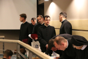 Wieczorem w Auli seminaryjnej odbyła się akademia pożegnalna połączona z wręczeniem dyplomów ukończenia studiów. Grupa teatralna przygotowała okolicznościowy spektakl, przedstawiający sceny z życia św. Jana Bosko, patrona rocznikowego Neoprezbiterów. Gratulacje i życzenia przekazał Ksiądz Rektor Jacek Soprych oraz Dziekan Alumnów dk. Piotr Struzik. W uroczystości wziął udział Dziekan WTST UPJPII ks. prof. Marek Kluz, który wręczył Absolwentom dyplomy.