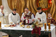 Centralnym wydarzeniem tych obchodów była Msza Święta której przewodniczył Pasterz diecezji tarnowskiej - Biskup Andrzej Jeż. Ksiądz Biskup podczas homilii pytał się o to, jak my przygotowujemy się do swojej śmierci, by stała się pięknym epilogiem życia jak u bł. Romana, i czy jesteśmy w stanie naśladować bł. Celestynę w jej pragnieniu zjednoczenia się z Chrystusem. Przypomniał, jak bł. Krystyn nawet w obozowych warunkach dbał o godność swojego kapłaństwa, wskazując w tym wzór do naśladowania w czasach, kiedy inni nie cenią kapłańskiego i zakonnego powołania. Na przykładzie bł. Julii mówił o sile ewangelizacyjnej na dzisiejsze czasy, jaką jest okazywana innym dobroć i miłość do każdego człowieka. - Coraz częściej posługujemy pośród osób niewierzących, nastawionych negatywnie do Kościoła. Podbić ich serca dobrocią to wciąż najbardziej skuteczna z metod otwierania ludzi na Boga - wskazywał Biskup.