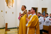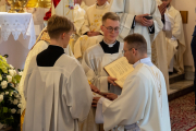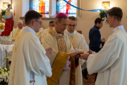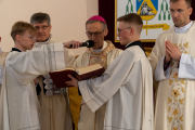 Natomiast bp Mirosław w homilii szczególnie zwrócił uwagę na przyjęcie przez nowych diakonów Ewangelii ze słowami „przyjmij Chrystusową Ewangelię, której głosicielem się stałeś. Wierz w to, co będziesz czytać, nauczaj tego, w co uwierzysz i pełnij to, co będziesz nauczał”. Argumentując, że Ewangelia nadaje sens posłudze diakońskiej i kapłańskiej. Biskup również powiedział, że Ewangelia będzie też wyznaczała kierunek działań i miejsca posługi, którymi będą wspólnoty parafialne, wspólnoty wiernych, które gromadzą się, aby słuchać słowa Bożego, tym słowem się karmić, karmić się ciałem Chrystusa i dzięki temu wzrastać w wierze.