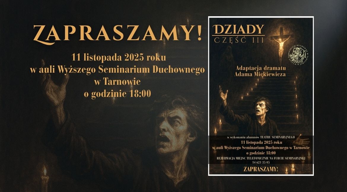 Z racji dużego zainteresowanie naszą adaptacją dramatu Adama Mickiewicza „Dziady cz. III” przychylamy się do waszej prośby i dodajemy jeszcze jeden termin - 11 listopada o godz. 18.00.